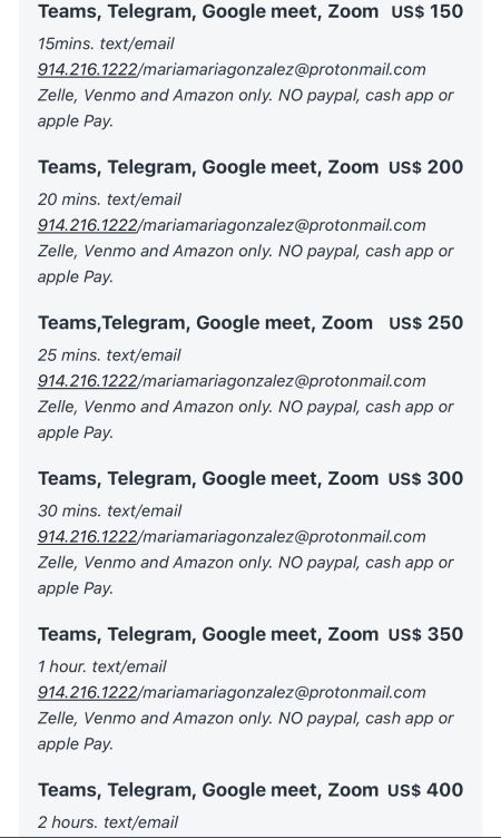 Includes my number so we can text anytime you like with videos/photos included. Email mariamariagonzalez@protonmail.com or text me now at 914.216.1222 to discuss this further.
